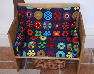 For the cushions I opted for easy.  I bought two Lusy Blom cushions (£4.99 each) also from Ikea and simply cut one end of each cushion and took the stuffing out.  When they were empty I measured and cut the excess fabric off, stitched the ends and put roughly half the stuffing back in.  I made small throw cushions from the fabric remnants.