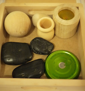 As an extra treat I've included a secret element to this box.  When I introduce this box I will initiate a conversation about birds: bird homes, birds fly, water birds, bird babies and nest building, and bird food.  Where do birds look for food?  What do they eat?  Where do we find bugs?  Oh!  Under rocks you say?  Well let's have a look!